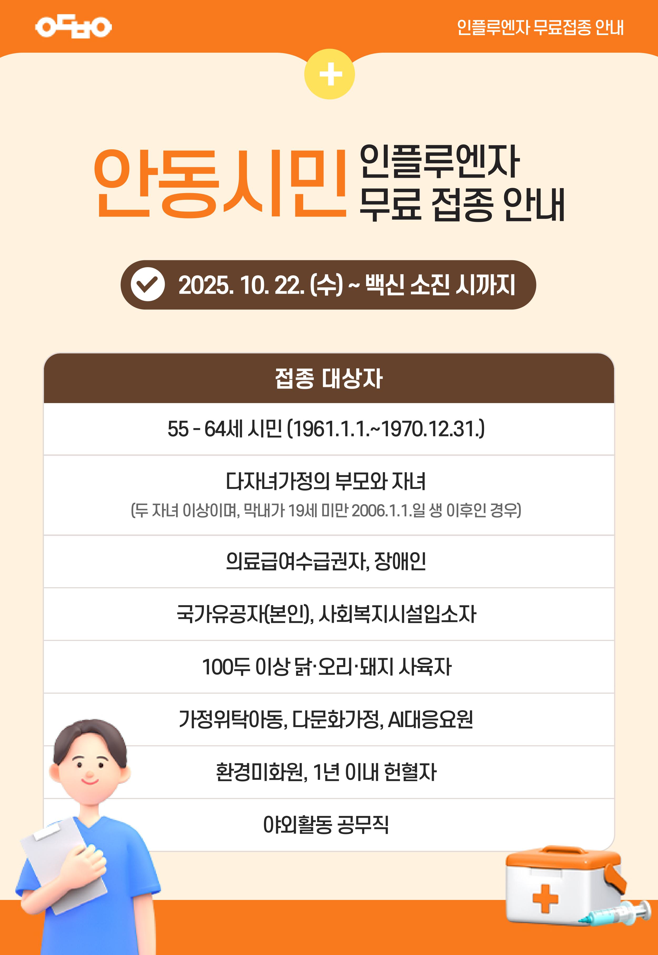 | 안동병원, 안동시민 인플루엔자 무료접종 안내 | |||||