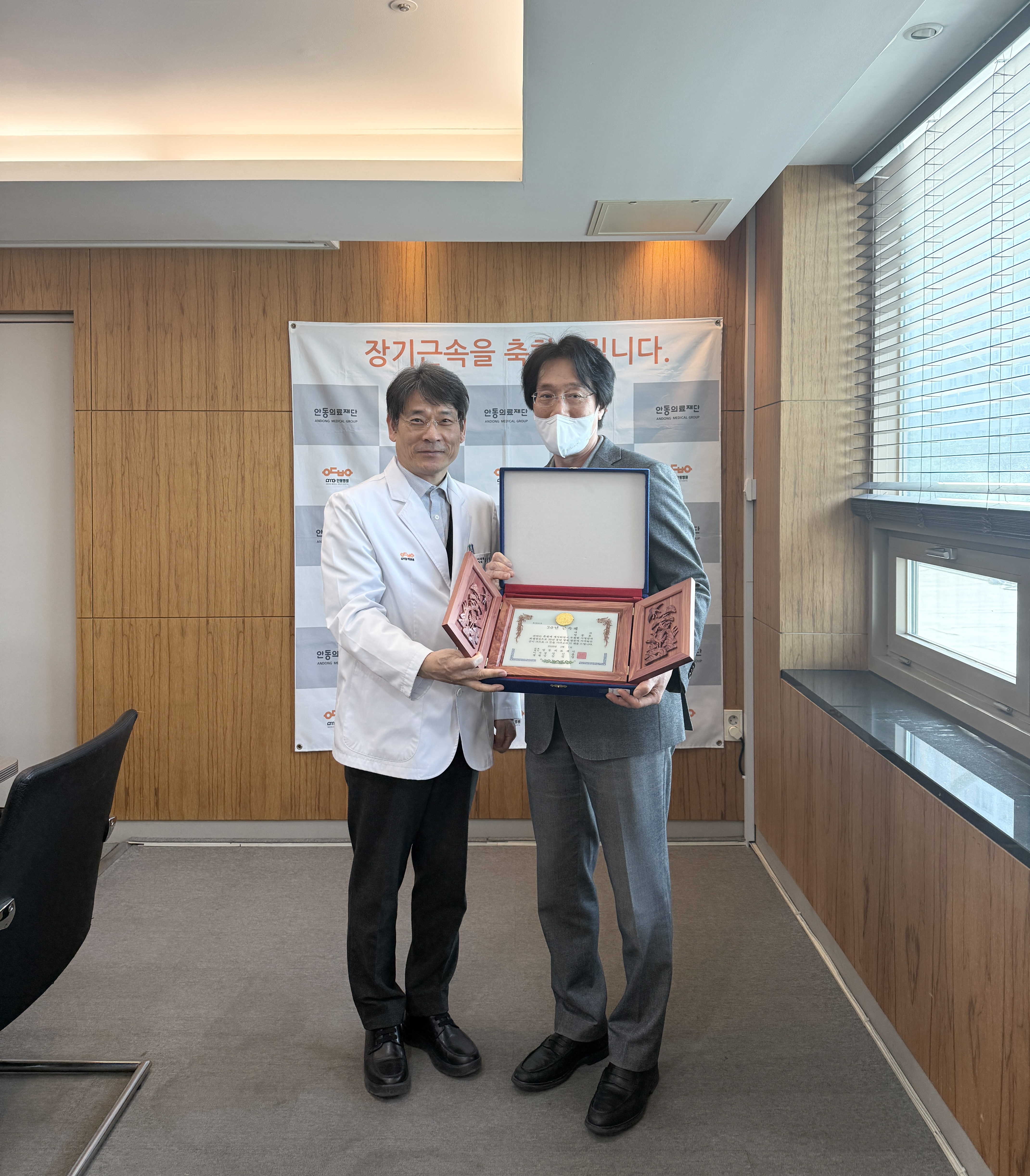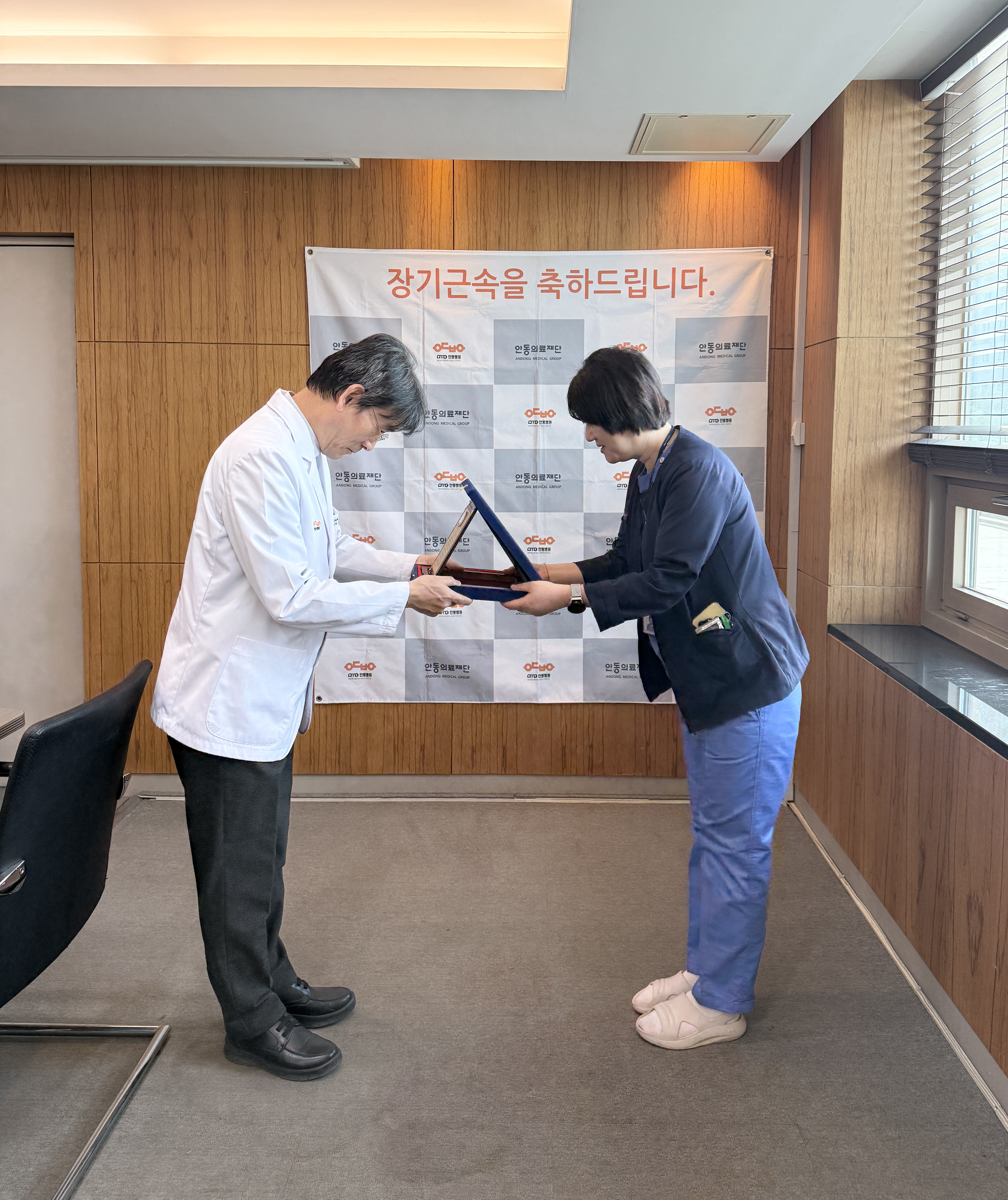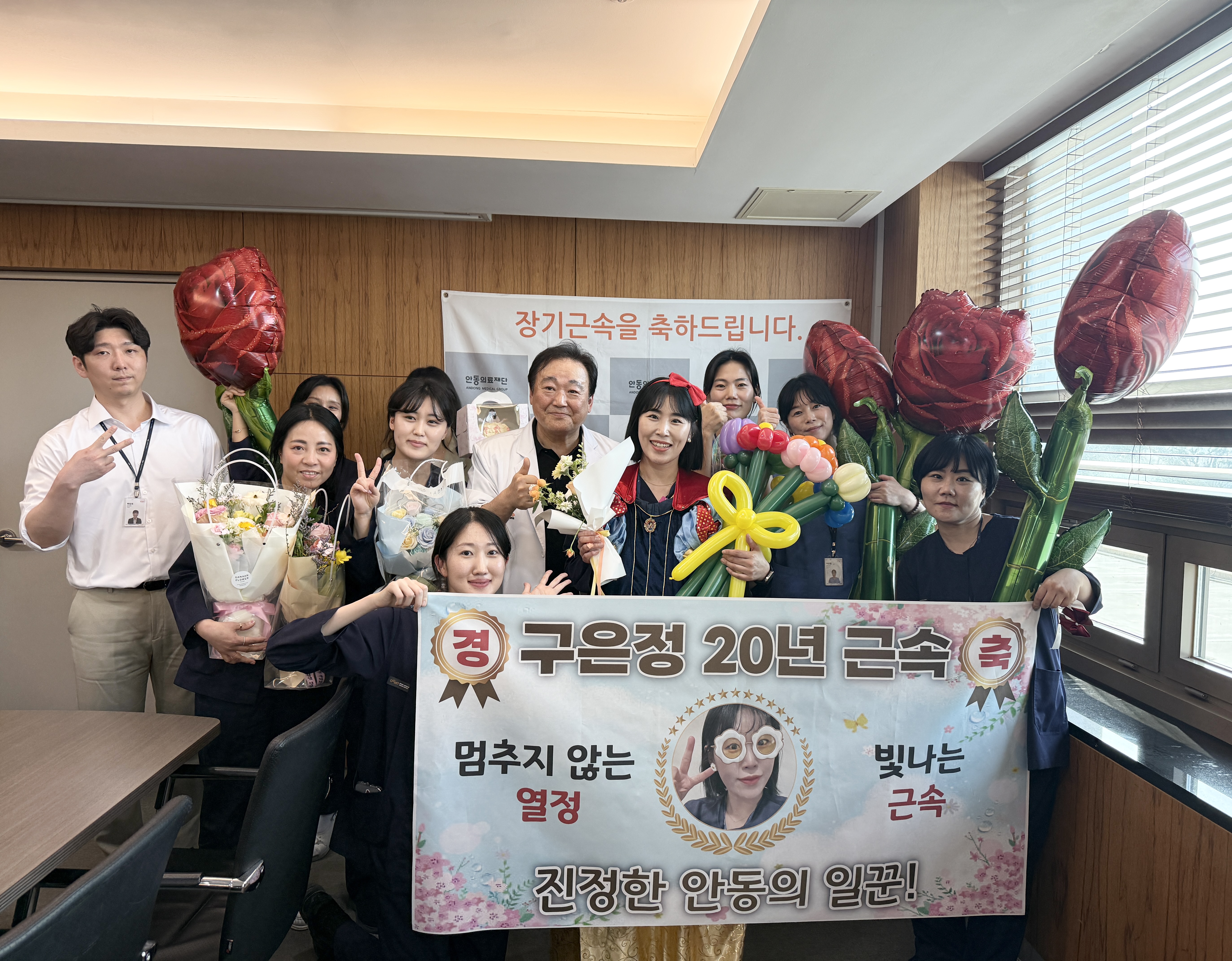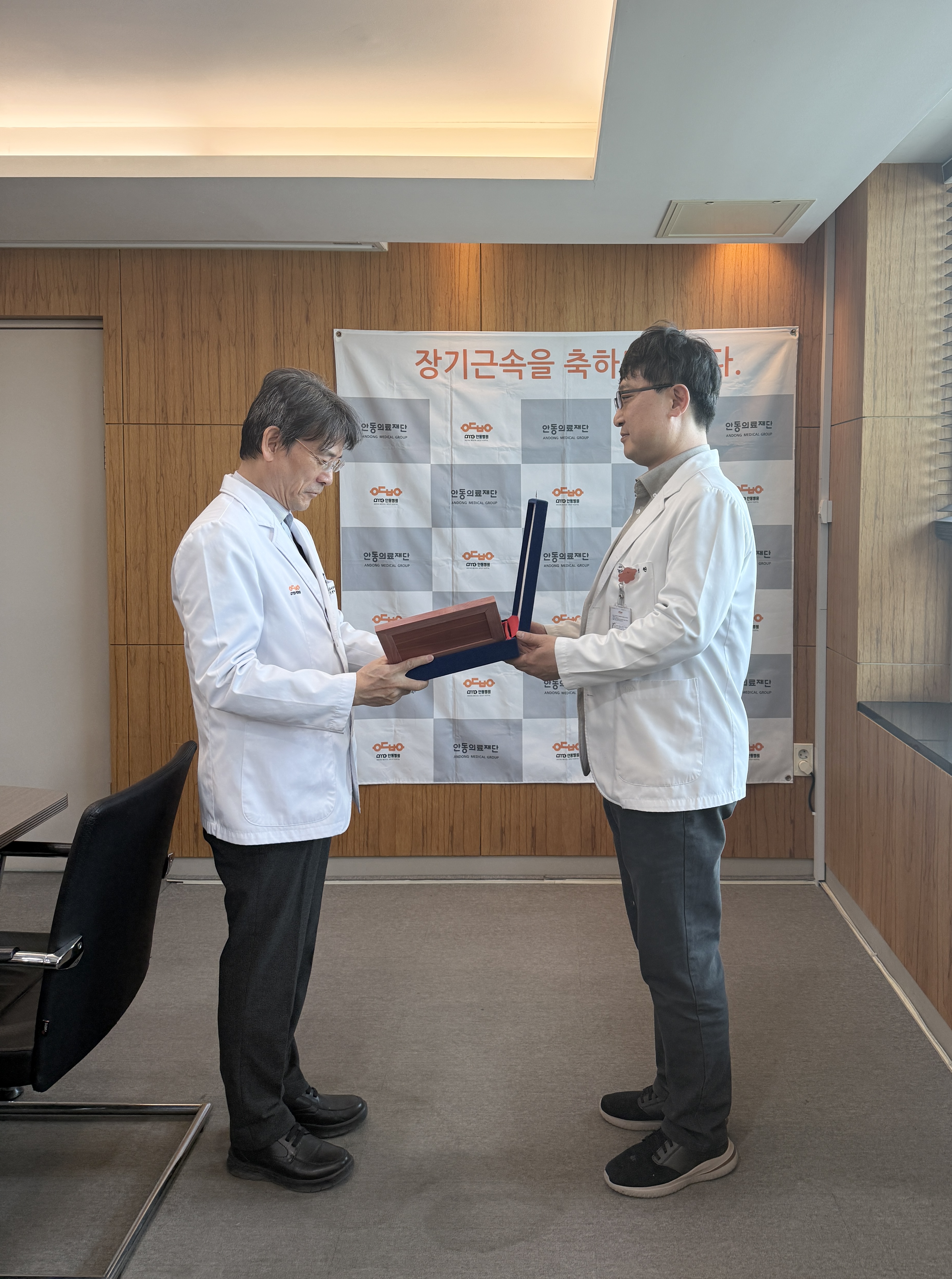 내용안동의료재단 3월 장기근속직원 포상 안동의료재단 안동병원(이사장 강신홍) 3월 장기근속 포상이 3월 26일 목요일 오후 4시 2층 회의실에서 열렸다.