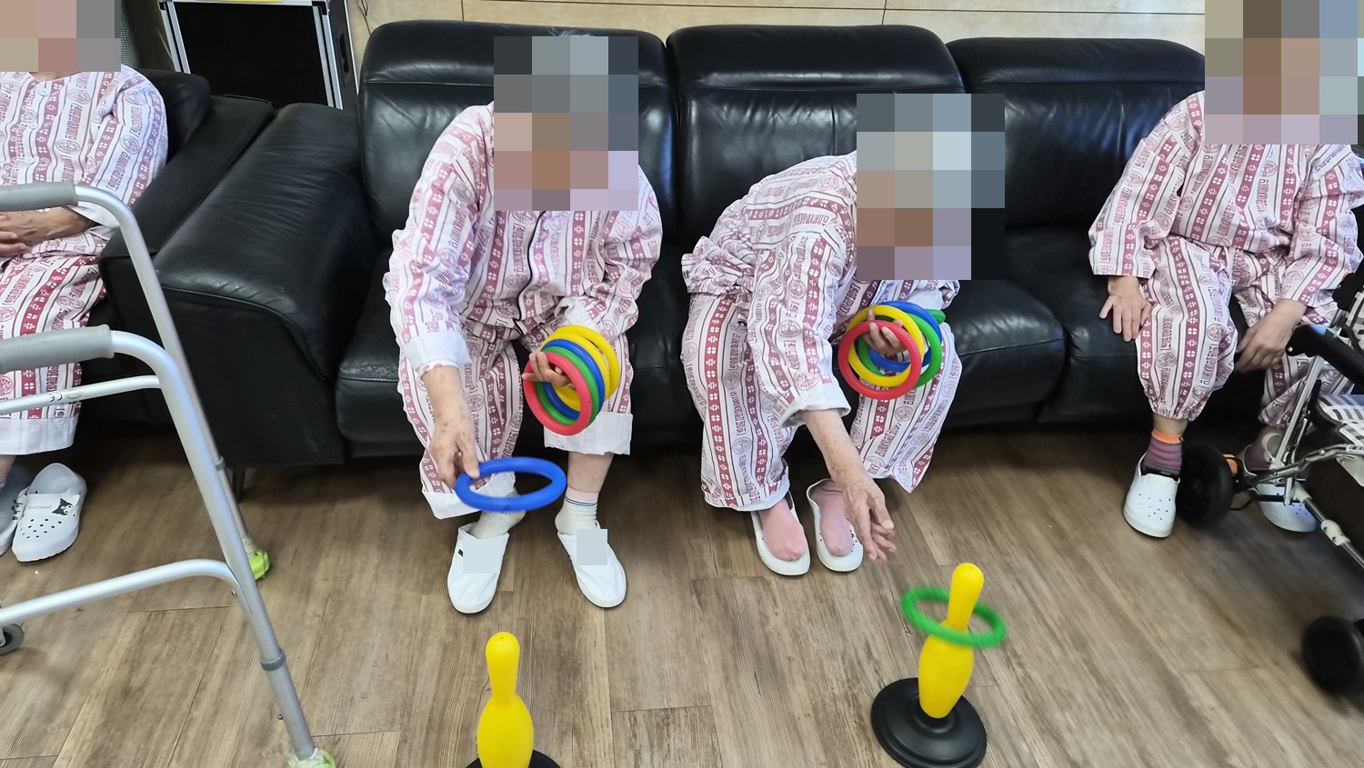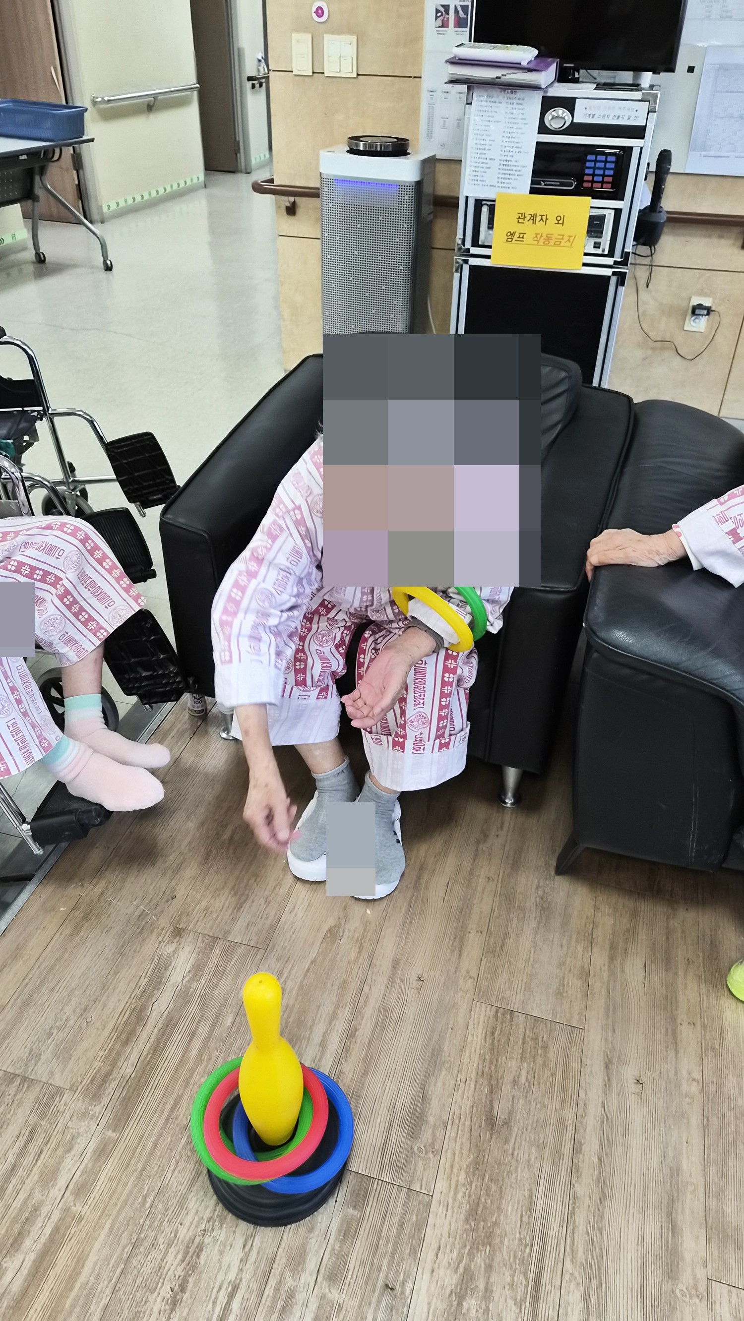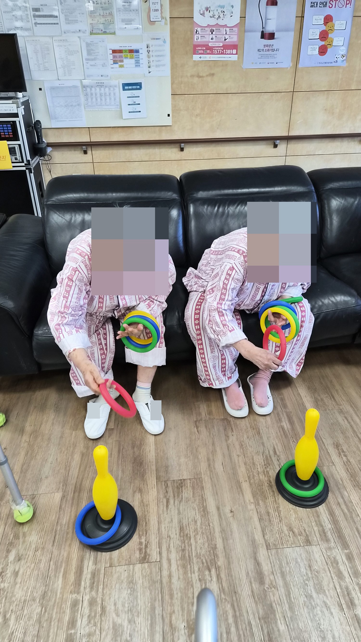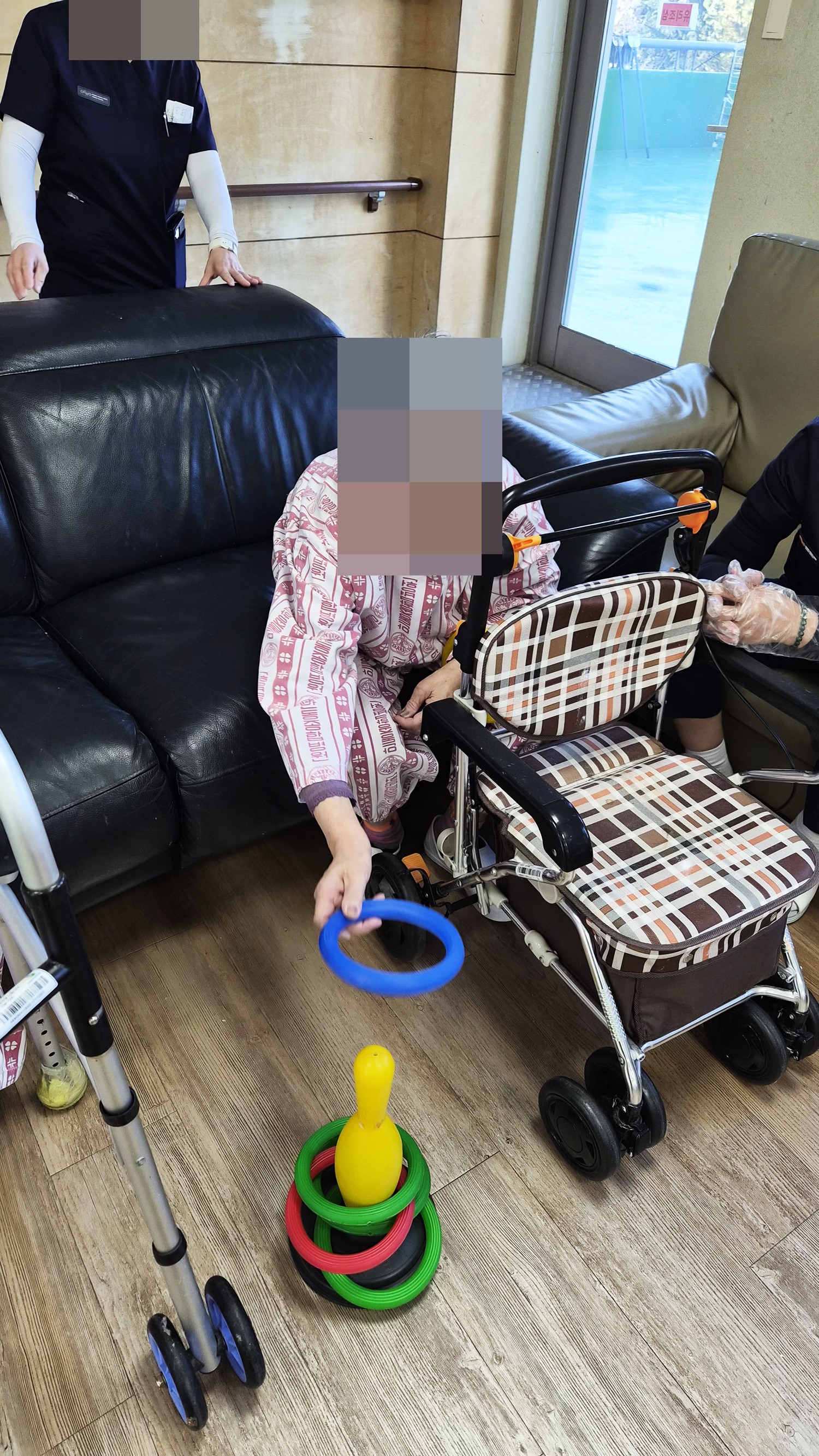 볼링핀을 향해 고리를 던지시는 프로그램 입니다. 어르신들께서 집중 하시며 참여 하셨으며, 누가 많이 던져서 넣나 내기를 하시며 참여 하셨습니다. |