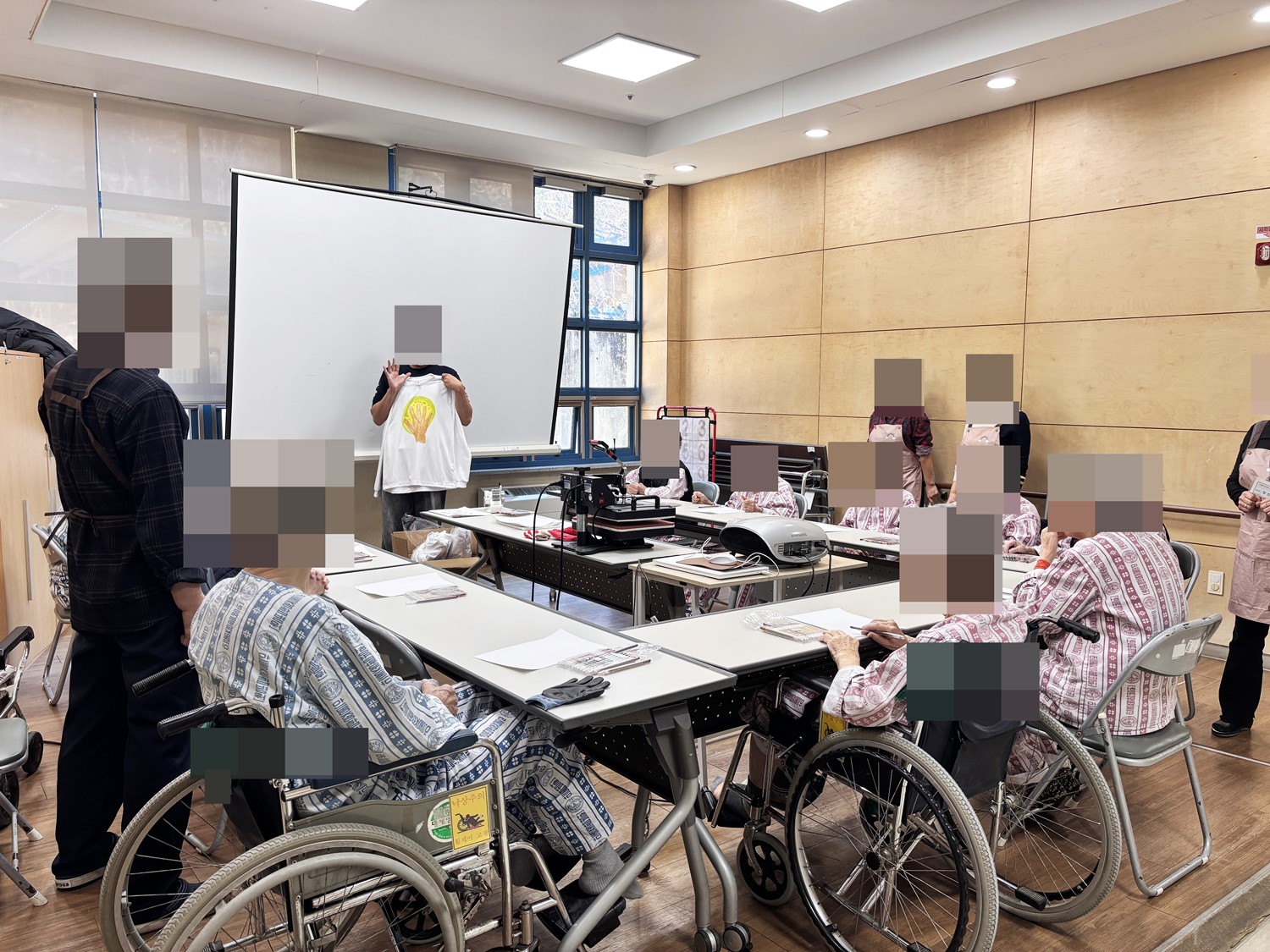 안동 온 사람들에서 외부강사 선생님이 방문하여 티셔츠 만들기 프로그램을 진행하였습니다. 어르신께서 적극적으로 참여를 해주셨으며, 진행에 어려우신 어르신의 경우에는 부분 도움을 드려 참여하셨습니다. 완성된 티셔츠를 보시며 흐뭇한 미소를 지어 주셨습니다. |